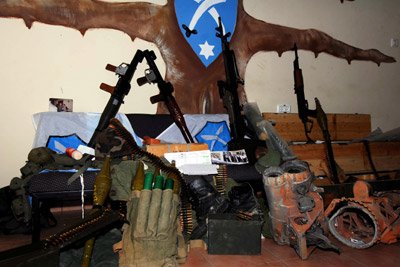 machine gun, a Kalashnikov gun, and a large number of bullets.