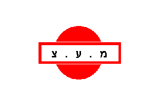 Keywords: public works department | makhleket avodot tziburiot | ma'atz | disc (red) | panel: fimbriated (white) | letters: hebrew (black) |