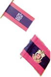 two versions of a red-black-red horizontal triband with a coat of arms centred.