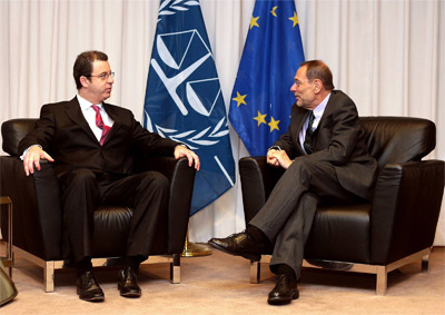 Javier Solana, right, talks with the Chief Prosecutor of the International