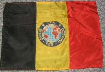 (Esperanto for "Service through friendship") in yellow sans-serif capitals.