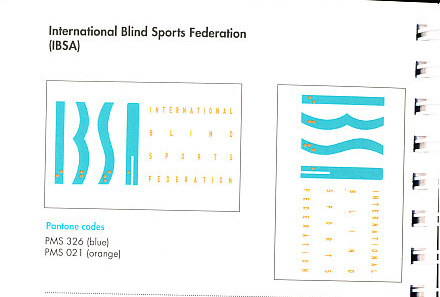 For International Blind Sports Federation - IBSF: PMS 326 blue, PMS 021 orange.