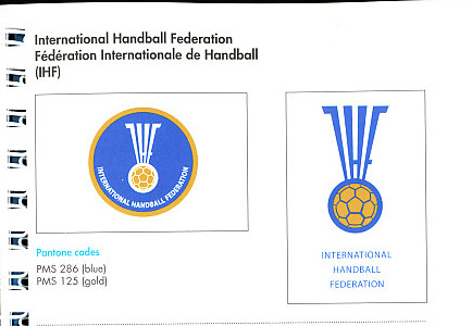 For International Handball Federation - IHF: PMS 286 blue, PMS 125 gold.