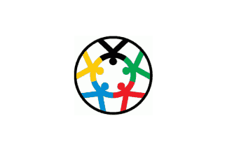 Its flag is white with black outlined disc emblem formed by five humanoids