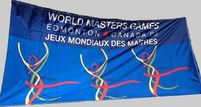 This is a picture of the World Masters Games Flag held in Edmonton in July
