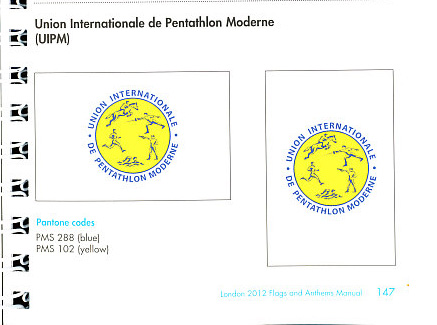 For International Modern Pentathlon Union - UIPM: PMS 288 blue, PMS 102 yellow.