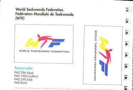 For World Taekwondo Federation - WTF: PMS 286 blue, PMS 7406 yellow, PMS 200
