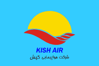 (white horizontal flag, with the logo in the middle, the words KISH AIRLINES in