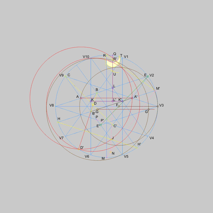 and V1-V7) and its symmetrical point K' (intersection of V1-V5 and V4-V10).