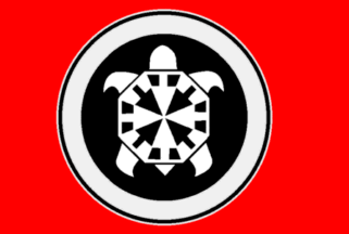 The flag is definitely Nazi-inspired, showing a black-white symbol on a red field [1,2,3,4,5]. The symbol is a stylized tortoise, its symbolism explained in a lengthy text on CasaPound's website [6]: longevity and the ancient Roman tactic of the "testudo formation" are two of the references.