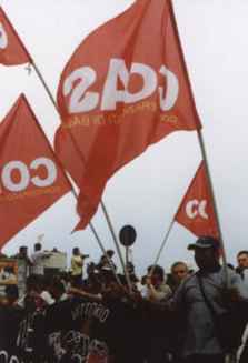 COBAS (COmitati di BASe) - Rank and File Comittee. Here is a photo of the flag