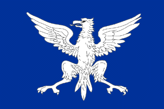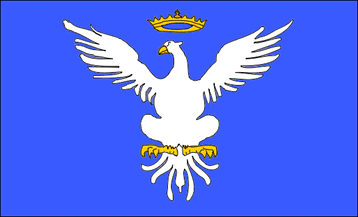 blue-white-blue vertical, with shield. Adopted in 1830 and used