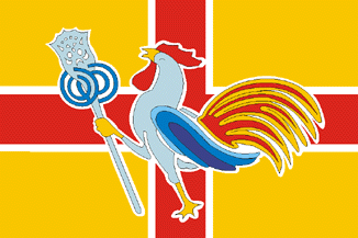 historical flag is red cross in white field); the rooster