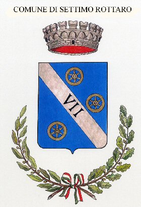 accompagnata da tre ruote d'oro, di sei raggi, due poste in capo