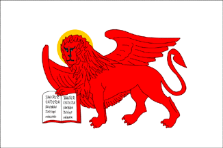 flag with the winged lion of St. Mark in red, facing the hoist,