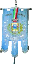 caricato dello stemma comunale con l'iscrizione centrata in oro