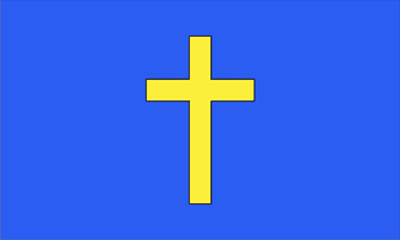 told him to travel from Normandy to Jersey. The parish flag is a gold cross on a