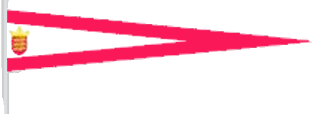The flag is a long triangular pennant, white edged red, with the minor arms