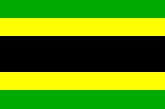 fly of the flag; the top and bottom triangles are in green; and