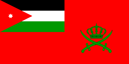This is a red ensign with the Jordani national flag in canton, and a green emblem (two crossed swords under a crown) in the fly. This is found in [Smith 1980].