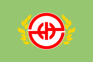 The former flag of the town of Mukawa, before 2006, was green with mark.