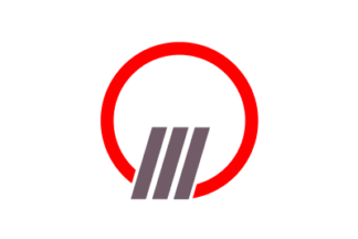 The flag of the town of Shiraoi is maroon with mark.