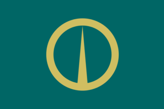 The flag of the city of Noboribetsu is bluish green with mark.