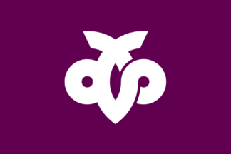The flag of the city of Mutsu is purple with mark.