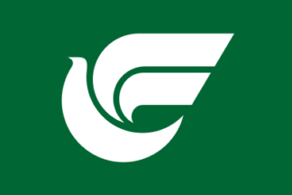 The flag of the village of Nishimeya is green with mark.