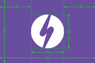 (DIC 583) on bright purple (DIC 225). The diameter of the emblem is 29/50