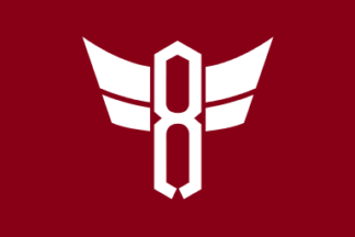The flag of the former town of Ninomiya was maroon with mark. The town is now,