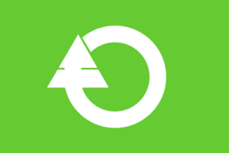 green flag has a white town emblem in the center. The town emblem is a stylized