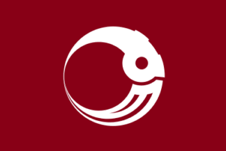 The flag of the former town of Tsukiyono was maroon with mark. The town is