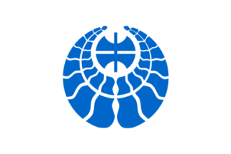 its emblem 5 July 1955; a stylized hiragana Ka か. No flag legislation but they have a flag: flag proportion: 2:3; colour of field: white;