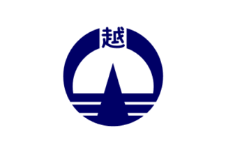 is a stylized kanji 越生 Ogose. The kanji letter 生 symbolizes green trees,