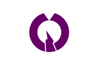 colour of field: white, colour of emblem: purple diameter of emblem: 3/5 flag height; a stylized hiragana Fu ふ