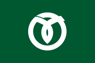 colour of emblem: white; diameter of emblem: 3/5 flag height; a stylized kanji hiragana Mi み.