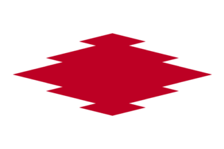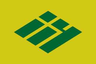 The flag of the former village of Kajikawa was yellow-green with mark. The