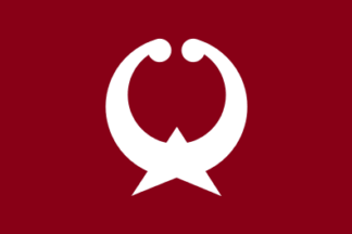 The flag of the former town of Daimon was maroon with mark. The town is now,