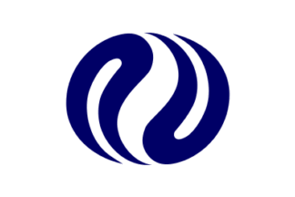 The flag of the former town of Oshima was blue with mark. The town is now,
