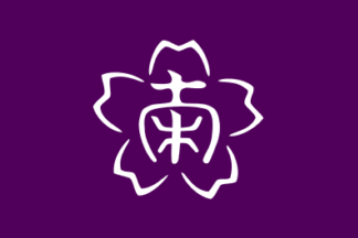 kanji 南 Minami of Minamiaiki in the background of a village flower Miyama