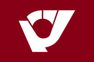 flag law. The maroon flag has a white town emblem in the center. The town emblem