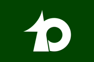 green flag has a white town emblem in the center. The town emblem is a stylized