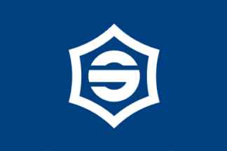 flag has a white town emblem in the center. The town emblem is a hiragana ら Ra