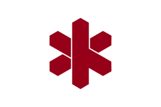 The flag of the city of Tondabayashi is white with mark. (2 versions with
