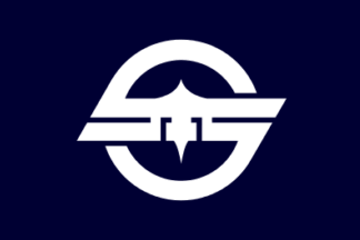 The flag of the former town of Hongu was blue with mark. The town is now,