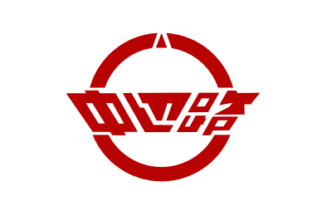 has a white city emblem in the center. The city emblem is a stylized kanji 田 Ta