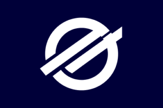The flag of the town of Funaoka was blue with mark. The town is now, from