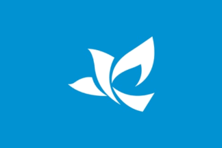 186. The light blue flag has a white town emblem in the center. The town emblem