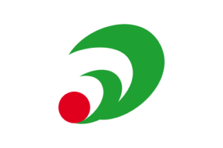 center. The city emblem is a stylized katakana ア A of Akaiwa. The red color